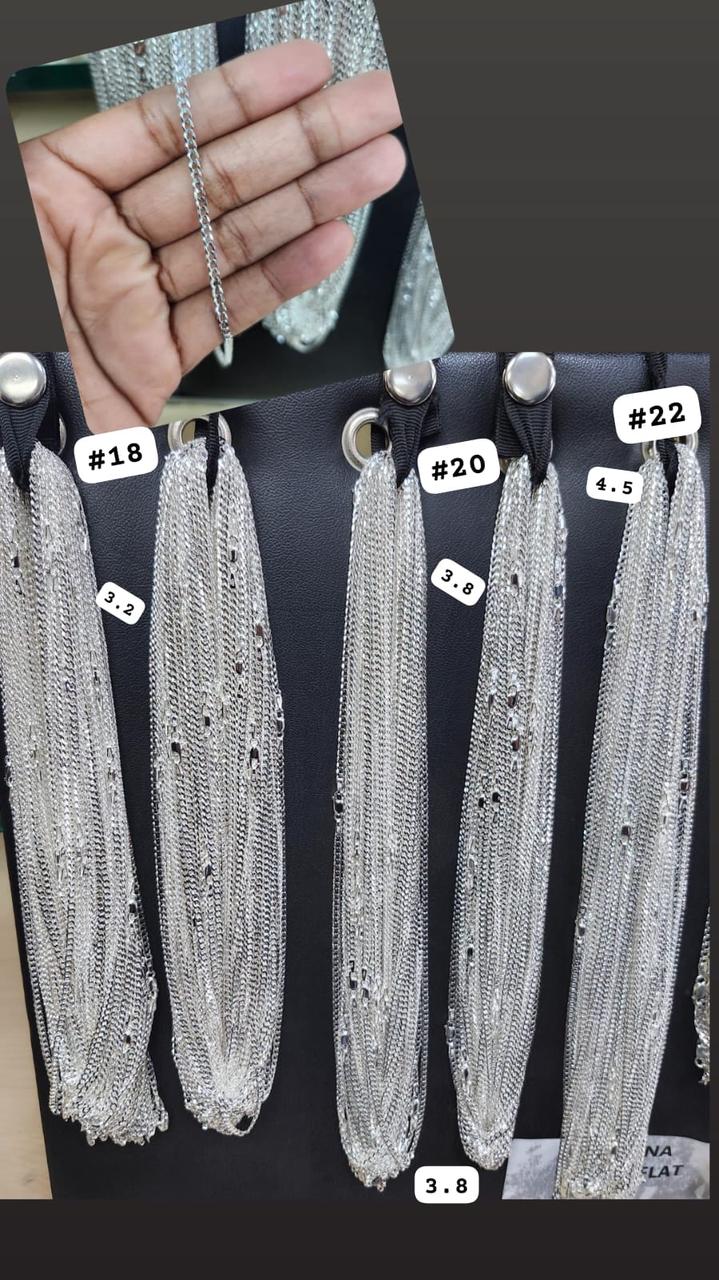 Luce elegante con nuestras cadenas de plata 925, disponibles en diferentes estilos y grosores. Perfectas para combinar con dijes o llevar solas. Disponible en calibres #18 (3.2g), #20 (3.8g) y #22 (4.5g).