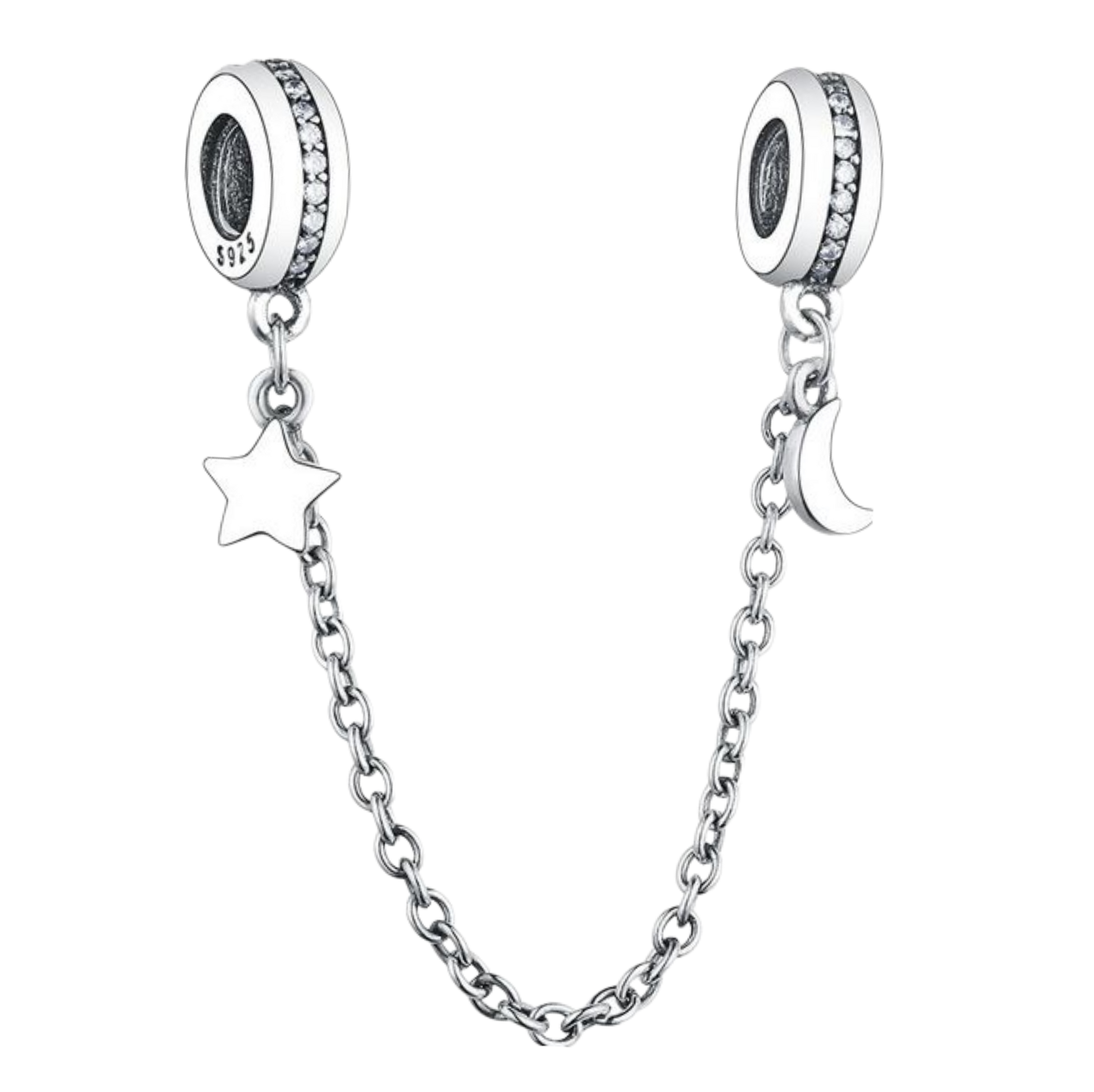 Agrega seguridad y estilo a tu pulsera con esta elegante cadena de seguridad elaborada en plata 925. Sus terminales pavonadas con circonias brillantes le aportan un toque de lujo, mientras que su cadena mantiene tus charms seguros y en su lugar. Ideal para pulseras