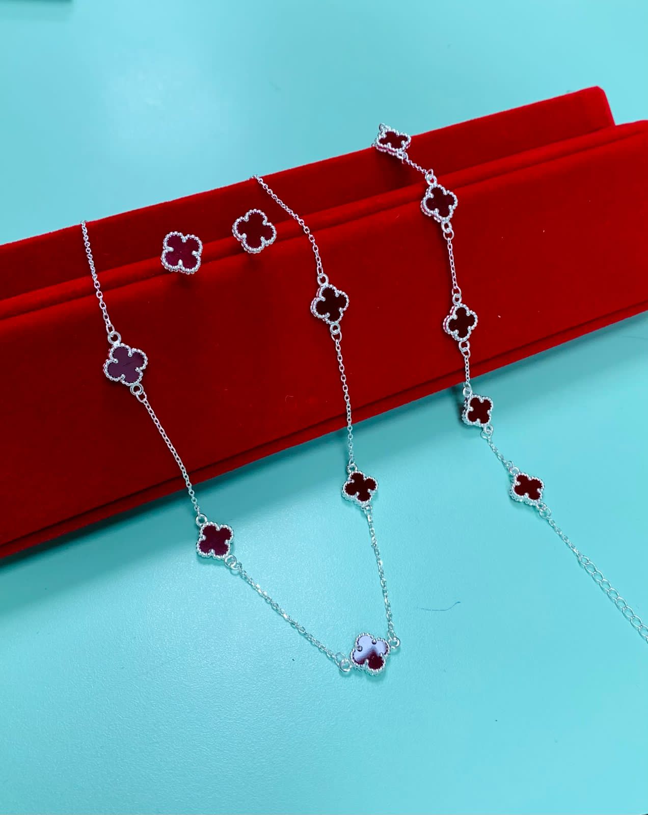 Elegancia delicada en cada detalle. Este set incluye un collar y una pulsera elaborados en plata bañada en oro con delicadas flores de madreperla blanca. Las piezas están unidas por una fina cadena que aporta un estilo moderno y sofisticado. Perfecto para eventos especiales o para dar un toque refinado al día a día.