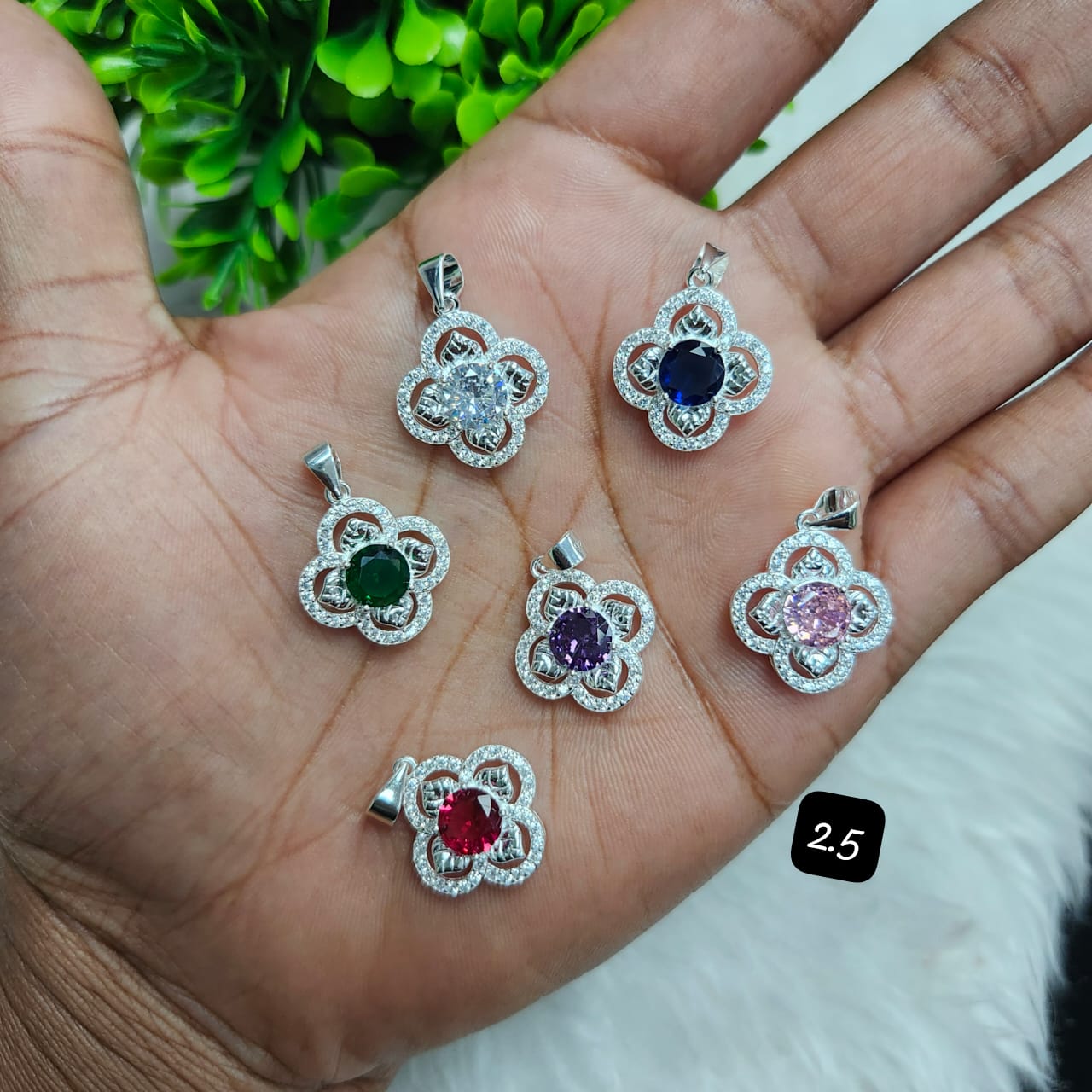 Añade un toque de brillo y color a tu look con estos elegantes dijes de plata 925, decorados con una circonia central en tonos vibrantes: rojo, azul, verde, lila, rosa y cristal. Cada dije cuenta con un fino trabajo de micro zirconias alrededor, aportando un acabado sofisticado y brillante. Perfectos para combinar con cadenas delicadas o regalar en ocasiones especiales.