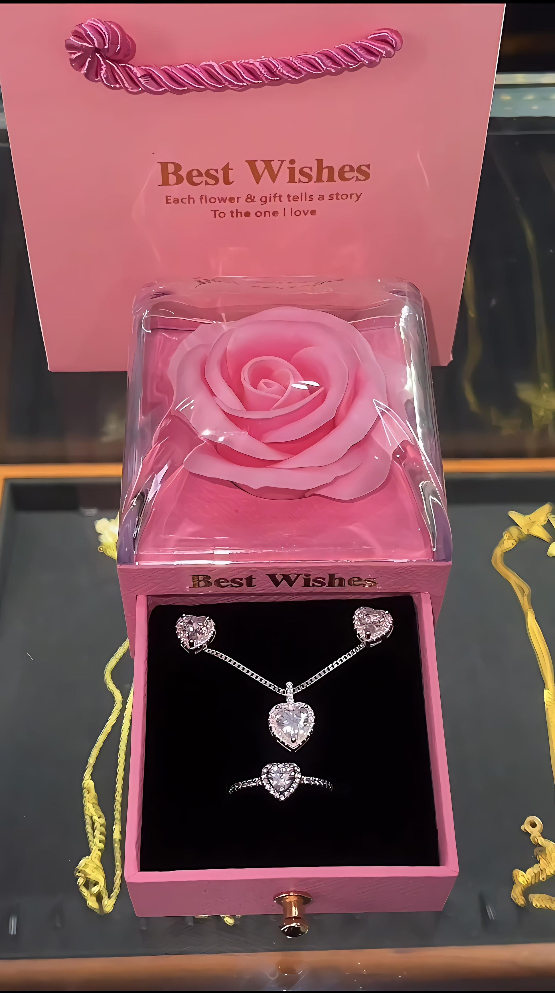 Un conjunto delicado y sofisticado, ideal para regalar amor en forma de joya. Incluye: