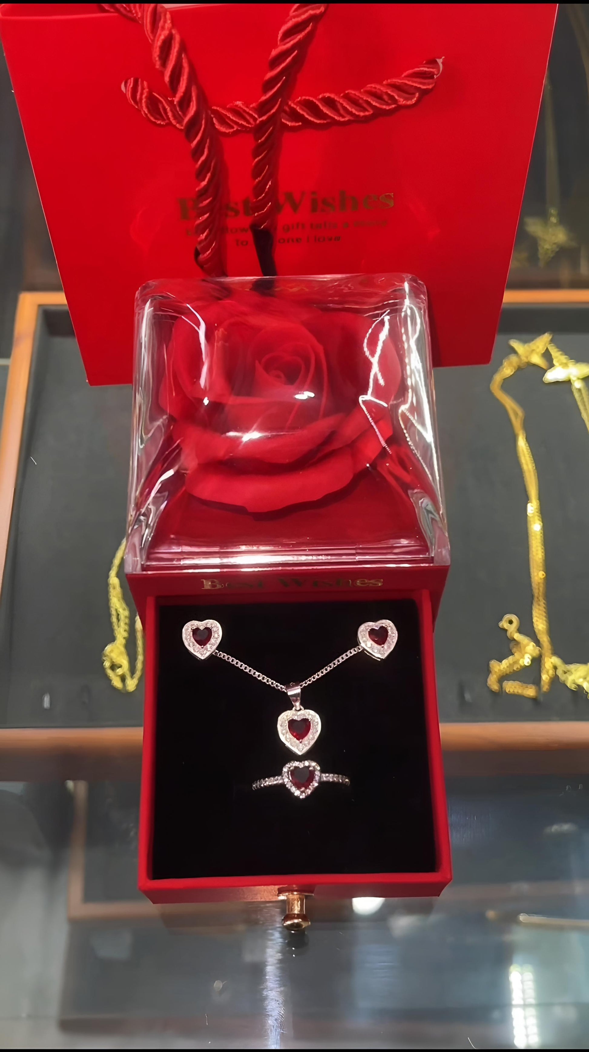 Un conjunto delicado y sofisticado, ideal para regalar amor en forma de joya. Incluye: