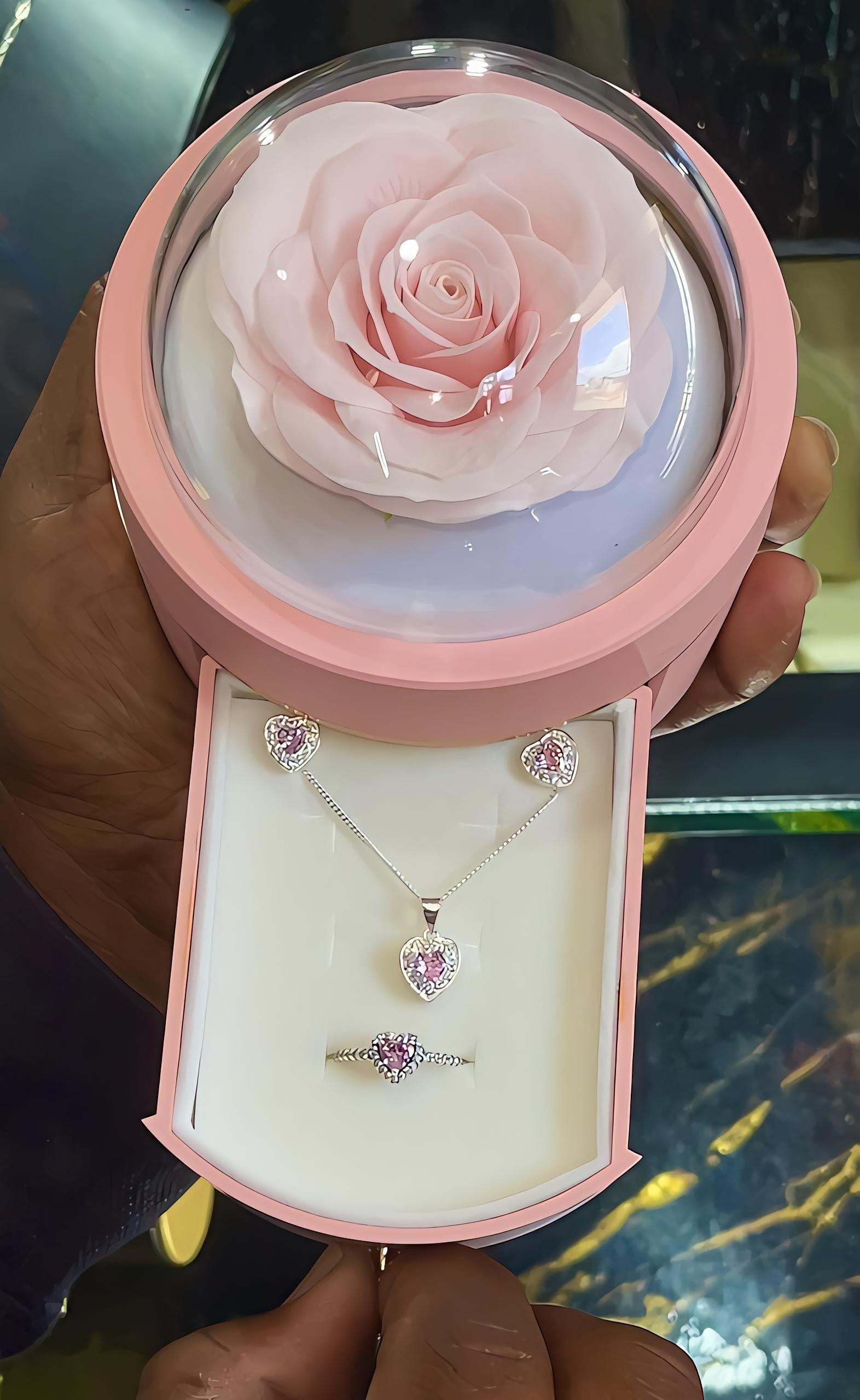Un conjunto delicado y sofisticado, ideal para regalar amor en forma de joya. Incluye: